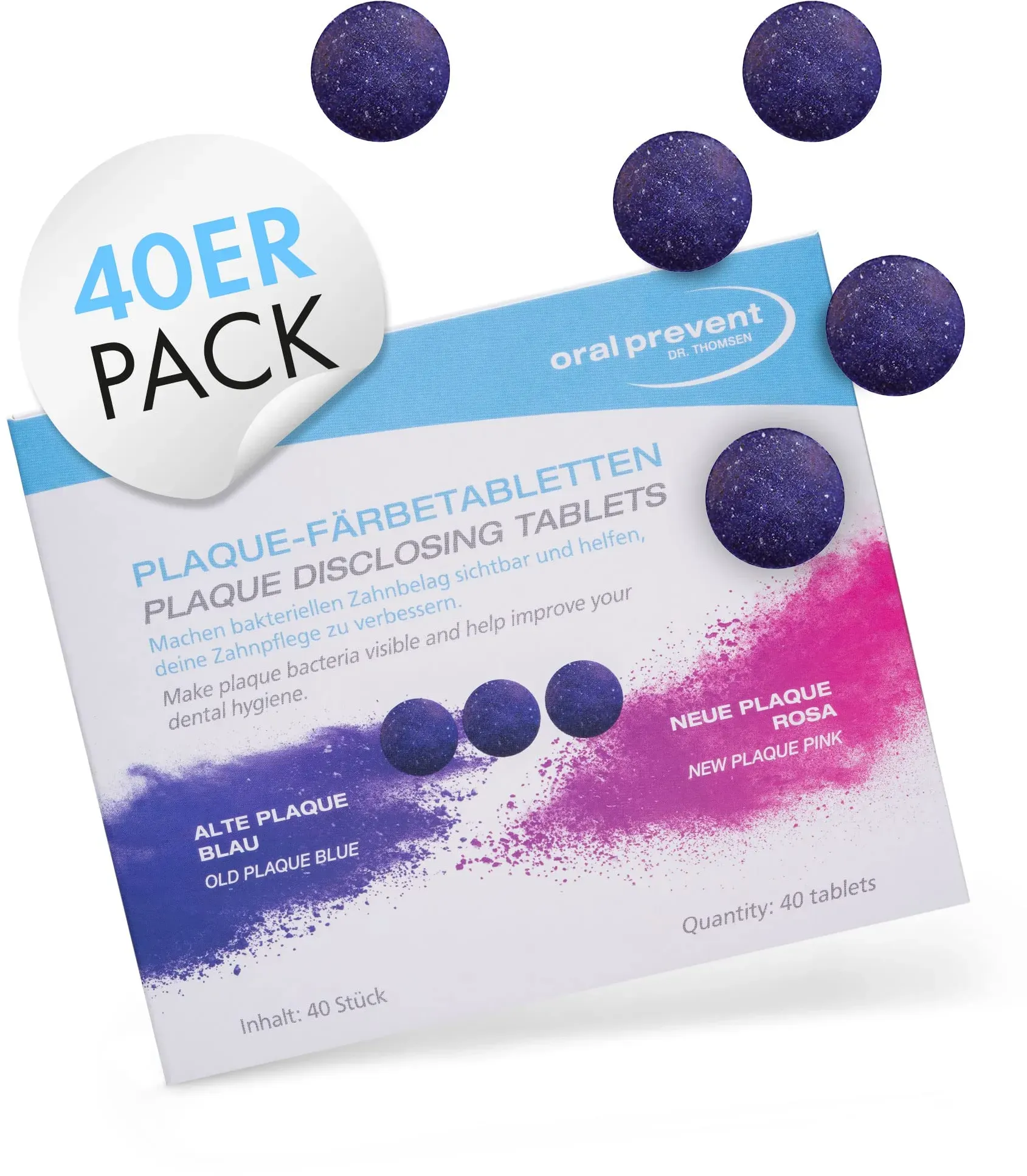 Zustand: Neu - 0,40 € / stück - Mund- & Zahnpflege - ORAL-PREVENT DR. THOMSEN - 77778 - EAN: 4032736004676 - 🦷 ð„ð ð ð„ðŠð“ðˆð•ð„ð‘ ð™ð€ð„ð‡ðð„ ðð”ð“ð™ð„ð: Die Färbetabletten von ORAL PREVENT machen den bakteriellen Zahnbelag sichtbar und Du kannst exakt sehen, wo gründlicher und mehr geputzt werden muss 🦷 ðŸ-ð ð€ð‘ðð„ð-ð’ð˜ð’ð“ð„ðŒ: Wenn die Zähne eingefärbt sind, wird alter Plaque blau und neuer Plaque rosa gefärbt. So kann genau geprüft werden, welche Bereiche häufig vernachlässigt werden 🦷 ðð„ð’ð’ð„ð‘ð„ ð’ð„ð‹ðð’ð“ðŠðŽðð“ð‘ðŽð‹ð‹ð„: Ob für einen selber oder die Kinder, die erythrosinfreien Zahnfärbetabletten helfen schon in kurzer Zeit die Zahnpflege deutlich zu verbessern 🦷 ðŠðˆððƒð„ð‘ð‹ð„ðˆð‚ð‡ð“ð„ ð‡ð€ððƒð‡ð€ðð”ðð†: Einfach nach dem Zähneputzen eine Färbetablette gegen Plaque im Mund zerkauen und ein paar Sekunden warten, bis die Verfärbungen sichtbar sind 🦷 ð”ðð’ð„ð‘ ð•ð„ð‘ð’ðð‘ð„ð‚ð‡ð„ð ð€ð ðƒðˆð‚ð‡: Sollte Dir aus irgendeinem Grund irgendwas an den Kautabletten nicht gefallen, bekommst Du Dein Geld zurück. Bis zu 30 Tage nach dem Kauf - Verkäufer: Oral Prevent | Dr. Thomsen im amazon.de Marketplace ![]() ![]() Miradent Mira - 2 Ton eBay Plaquetest Zahneinfärbetabletten 50 Stück Zahnbelag anfärben