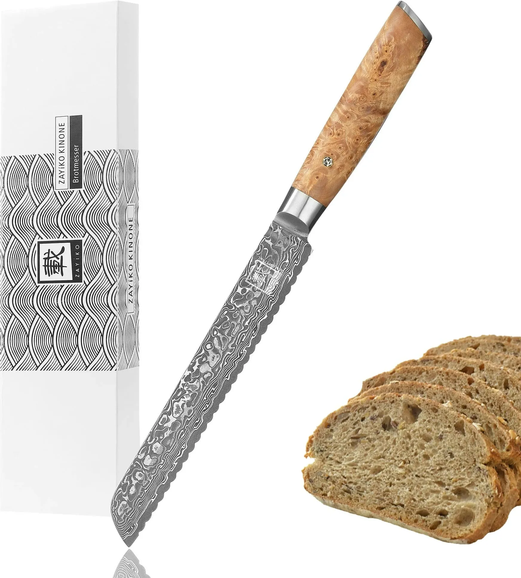 Zayiko - EAN: 4250567707065 - Zayiko Damast Brotmesser - Klinge 20 cm - Serie Zayiko Kinone Die Damastmesser der Serie Zayiko Kinone gehören zu den schärfsten Messer-Serien der Welt. Das Brotmesser aus der Serie Zay ko Kinone sollte in keinem Haushalt fehlen! Es ist nicht nur... - bei metro.de - aus Yadore Produktdaten ![]() ![]() zayiko Kurumi Premium Brotmesser mit 20 cm Klinge gefertigt aus 67 Lagen echtem Damaststahl mit Nussbaumgriff I Holzbox I Damastmesser Küchenmesser und Profi Kochmesser