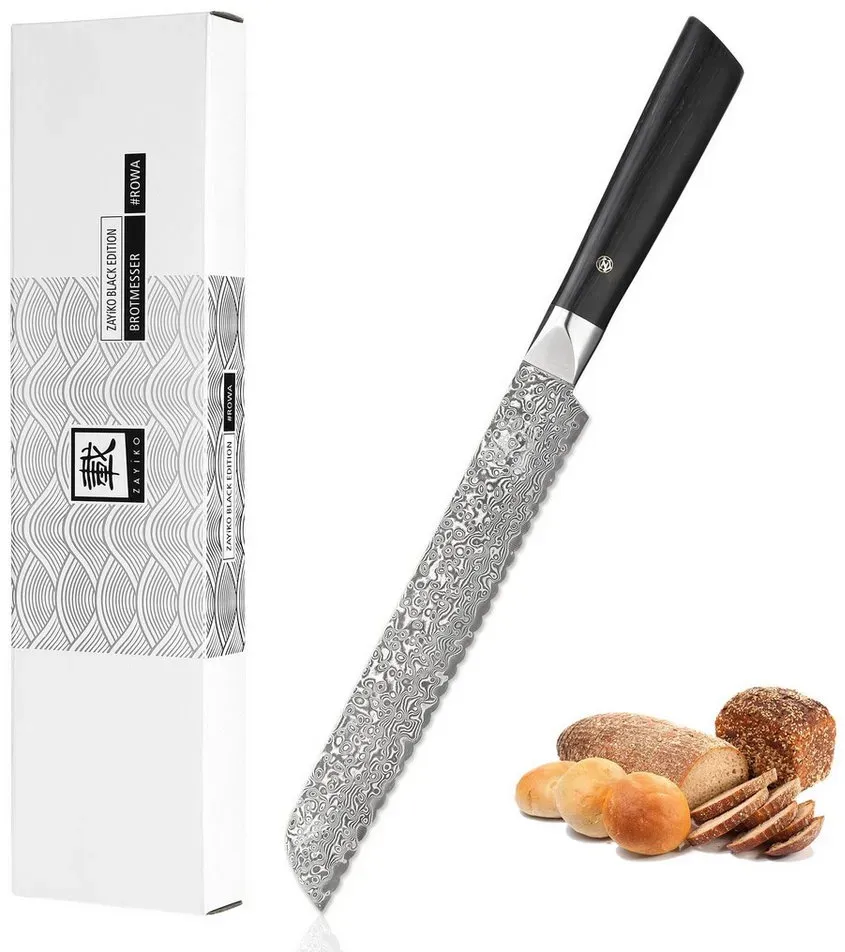 Zayiko - EAN: 4250567703838 - Zayiko Damast Brotmesser - Klinge 20 cm - Serie Zayiko Black Edition Der Brotspezialist Das Brotmesser aus der Zay ko Serie Black Edition sollte in keinem Haushalt fehlen! Es ist nicht nur das Messer der Wahl für Brot und Baguettes, sondern eignet... - bei metro.de - aus Yadore Produktdaten ![]() ![]() Zayiko Damastmesser - Brotmesser Black eBay Edition