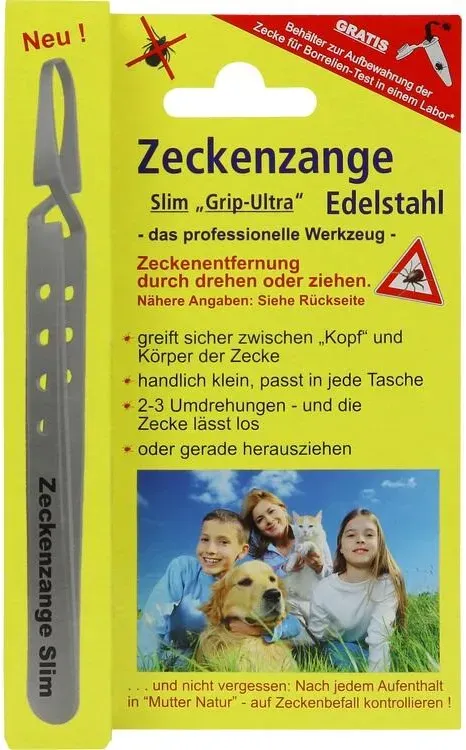 19 Händlerangebote bei billiger.de - Kategorie: Arzneimittel - Pharma Brutscher - Zeckenzange Slim aus Chirurgenstahl Die Greifarme dieser Zeckenzange sind extra fein und können damit sowohl für grosse, als auch für kleinere Zecken benutzt werden. Sie kann zum Drehen oder Ziehen eingesetzt werden. Ein mitgelieferter Behälter ermöglicht das unproblematische Aufbewahren der entfernten Zecke zur Untersuchung beim einem Arzt oder Apotheker. - GTIN:4150047598803 - PZN:04759880 Eine Zeckenzange aus geriffeltem Chirurgenstahl, die einen besonders guten Halt beim Entfernen der Zecke bietet. ![]() ![]() Zeckenzange Chirurgenstahl geriffelt Inhalt: 1 St