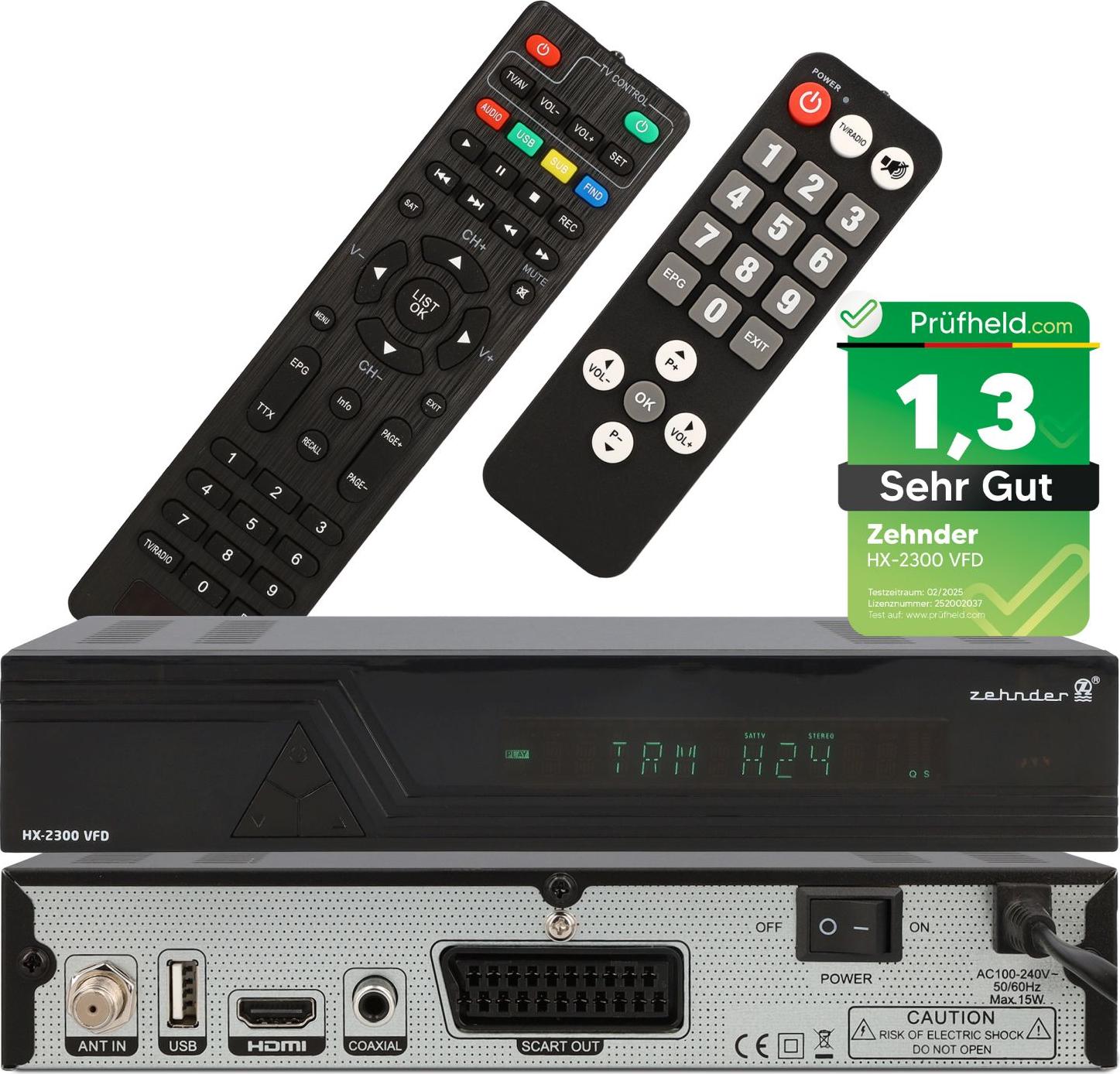 Auf Lager Versand durch Amazon[ Test SEHR GUT, Note 1.3 *] Zehnder HX 2300 VFD Sat Receiver mit Aufnahmefunktion, HD fähig, Full HD, Digital Sat-Receiver für Satellitenschüssel Satelliten Satellit TV Fernseher, HD-Receiver