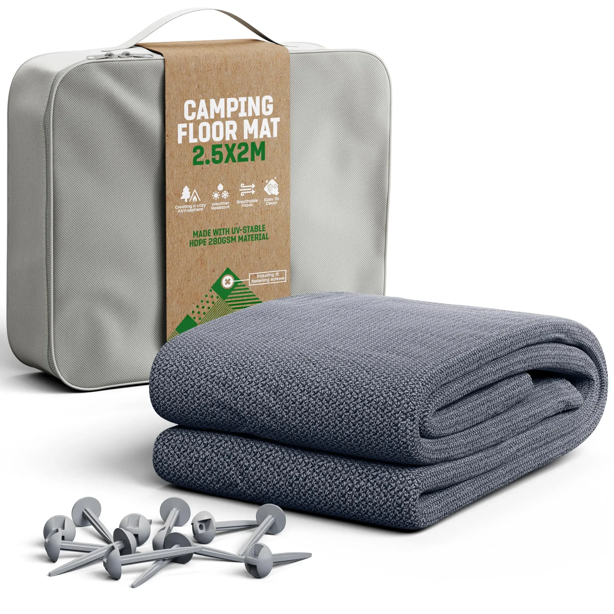 Kategorie: Zelt-Zubehör - vidaXL - GTIN:8720286093221 - Mit diesem Zeltteppich sind deine Campingausflüge komfortabler. Leg ihn in dein Zelt, unter deine Wohnwagenmarkise oder auf deine Terrasse. Langlebiges Material: Polyethylen hoher Dichte (HDPE) bietet eine starke Oberflächenbeständigkeit und ist stoß- und kratzfest. Zudem ist es UV-beständig, was es vor Sonnenschäden und Verfärbungen schützt. Praktische ösen: Der Outdoor-Teppich ist zur einfachen Befestigung mit integrierten ösen an seinen vier Ecken versehen. Einfache Reinigung: Der Terrassenteppich lässt sich leicht mit Wasser reinigen. Schneidbar: Der Campingteppich kann bei Bedarf leicht auf jede gewünschte Größe zugeschnitten werden. - 18,90 Euro bei Amazon Marketplace Automotive - gefunden von billiger.de Der YRHome Vorzeltteppich ist eine praktische Wahl, da er mit 13 Heringen und einer Tragetasche geliefert wird und aus robustem HDPE besteht. ![]() ![]() YRHome Vorzeltteppich Zeltteppich 2.5 x 2.5 m Zeltunterlage Outdoor Camping Vorzelt Campingteppich Campingmatte Vorzeltboden aus HDPE Zeltboden Soft für Zelt Wohnmobil mit Tragetasche,13 Heringe