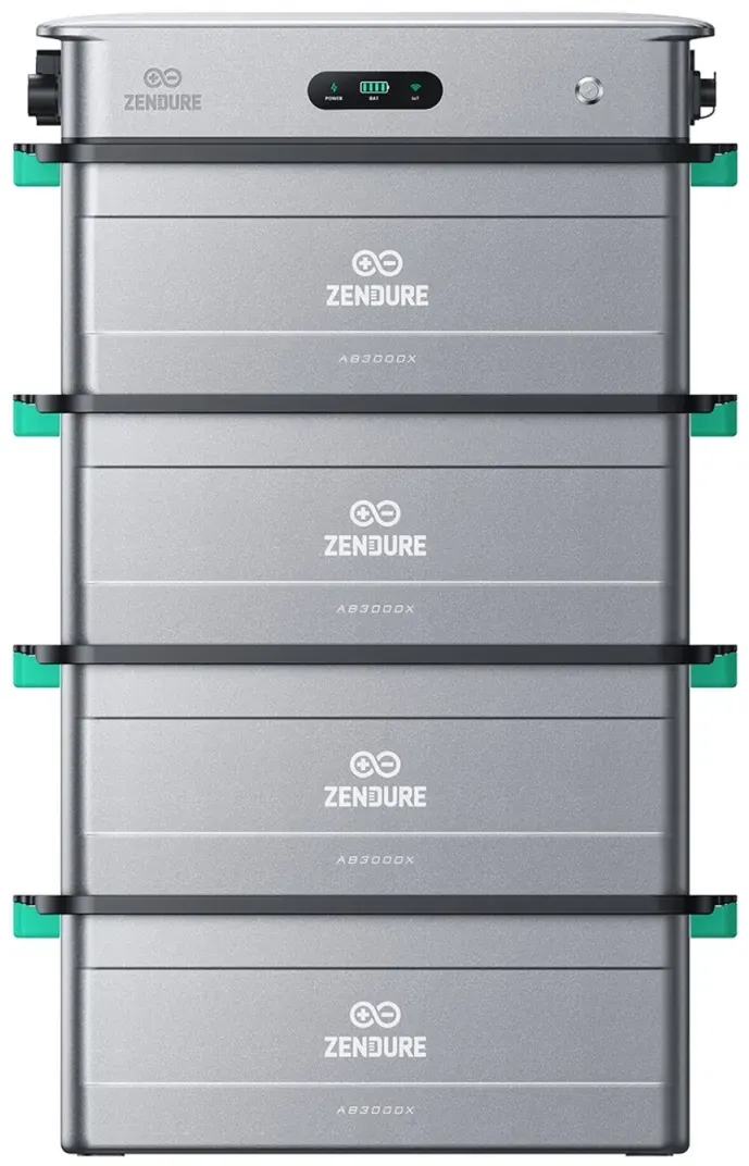 Energiespeicher Solarenergie - EAN:6976552196789 - AB3000X LiFePO‚„-Akku - Effiziente Energiespeicherung mit 2.880Wh Achtung: Nur mit dem Zendure SolarFlow 2400AC kompatibel! Zuverlässige Energiespeicherung für Solarsysteme Der AB3000X LiFePO‚„-Akku mit 48V und 2.880Wh bietet eine langlebige und zuverlässige Lösung zur Speicherung von Solarenergie. Mit einer Kapazität von 60Ah und bis zu 6.000 Ladezyklen sorgt er für eine nachhaltige Energieversorgung. Erweiterbare Kapazität für größere Energiebedarfe Für mehr Flexibilität lässt sich die Kapazität durch die Kopplung mehrerer Einheiten auf bis zu 17.280Wh erweitern. Damit eignet sich der Akku für unterschiedliche Anwendungen - von Balkonkraftwerken bis hin zu autarken Off-Grid-Systemen. Robust und wetterfest - ideal für den Außeneinsatz Dank der Schutzklasse IP65 ist der Akku gegen Staub und Strahlwasser geschützt. Die integrierte Selbstheizfunktion ermöglicht eine zuverlässige Nutzung auch bei niedrigen Temperaturen bis -20°C. Sicherheit auf höchstem Niveau Der Akku verfügt über ein Aerosol-Feuerlöschsystem, das bei 170°C ±10°C aktiviert wird. Zudem bieten Schutzmechanismen gegen Überspannung, Überstrom, Kurzschluss und Überhitzung höchste Betriebssicherheit. Kompatibel mit Mikrowechselrichtern führender Hersteller Der AB3000X lässt sich problemlos mit dem SolarFlow 2400 AC sowie Mikrowechselrichtern von Hoymiles, Deye, APSystem, Solix, WVC, NEP, Bosswerk und Envertech kombinieren. Technische Daten Modell: ZDAB3000X ... Dieses Set bietet ein komplettes System mit dem SolarFlow 2400 AC und einem AB3000X Speicher zu einem fairen Preis. ![]() ![]() Zendure SolarFlow 2400 AC, KI AC-gekoppelte Energie Management System, 2400W AC Eingang, 2400W Ausgangsleistung, mit 1 AB3000X 2,88 kWh LFP Akku, 17,28 kWh Erweiterbare Kapazität max., TOU