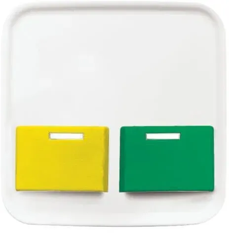 Kategorie: Sonstige Elektroinstallationsartikel - Busch-Jaeger - GTIN:4011395003534 - Zentralscheibe als Abdeckung für Ruftaster 'Arztruf' Farbe des Bedienelements: blau Farbe: alpinweiß glänzend Schalterdesign: Reflex SI, Reflex SI Linear, Reflex SI / SI Linear Spezifikationen Geeignet als Zentralplatte: ja Geeignet für Einstellschalter: nein Geeignet für Zugkontakt: nein Busfähig: nein Geeignet für Schwesternrufsystem: ja Geeignet für Radioübertragung: nein Geeignet für Programmwahlschalter: nein Blindplatte: nein Farbe: weiß RAL-Nummer (ähnlich): 9010 Halogenfrei: ja - 10,94 Euro bei elektroland24.de - gefunden von billiger.de Diese 2-fach Zentralscheibe für Abstelltaster mit gelber und grüner Abstelltaste für 14,58 Euro bietet eine klare visuelle Rückmeldung. ![]() ![]() Busch-Jaeger 2548-642 E-214-101 Zentralscheibe 2-fach für Abstelltaster (B3/B3N) mit gelber und grüner Abstelltaste, alpinweiß glänzend, Reflex SI