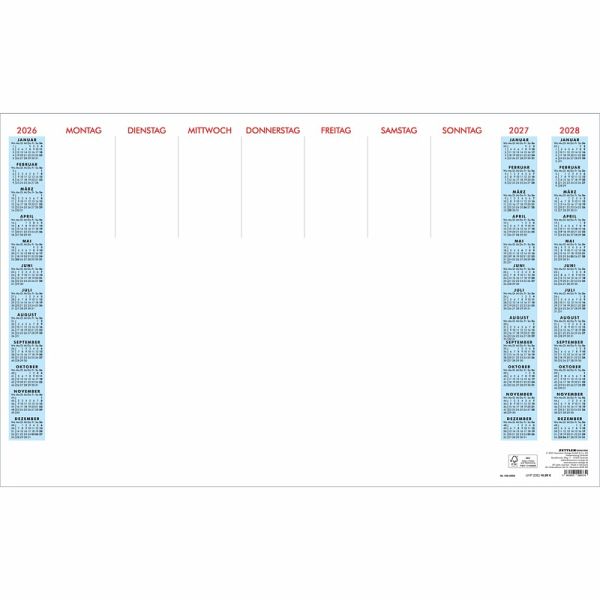 Der angezeigte Preis könnte seit dem letzten Update gestiegen sein - EAN: 4069095001183 - Wochenbuch Sekretär 2026 - Bürokalender 20x21 cm - Farbe: anthrazit - 1 Woche auf 2 Seiten - Buchkalender - 786-0021 - Kalender Das Zettler Wochenbuch Sekretär 2026 in elegantem Anthrazit verbindet übersichtlichkeit, hochwertige Verarbeitung und... - Zustand: NEW - bei Buecher.de - gefunden von Buycentral Eine praktische Schreibunterlage für das Jahr 2026 mit Wochenübersicht und Dreijahreskalender. ![]() Schreibunterlage 2026 - 59,5x37 cm - 1 Woche auf 1 Blatt - 36 Blatt, mit Kartonunterlage - mit Dreijahresübersicht auf jedem Blatt - 108-0000