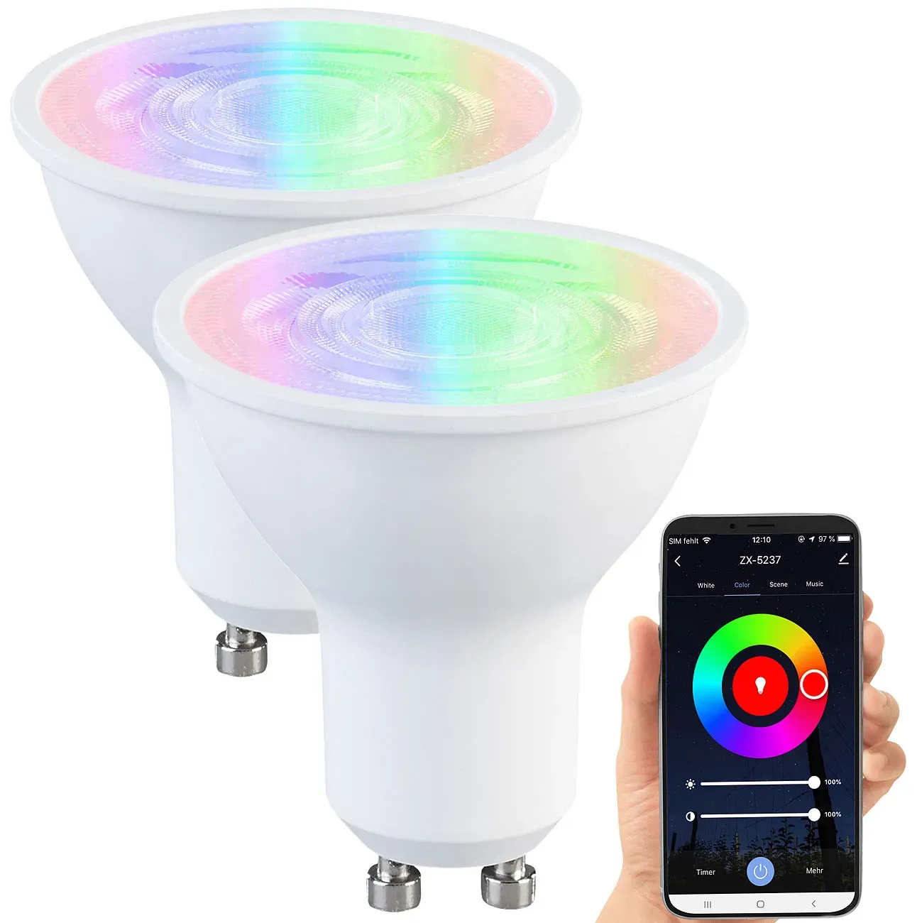 Zustand: Neu - LED Lampen - LEDVANCE - 4058075729162 SMARTZBPAR16 4,7W 220V TW GU10 4X1 LEDV - EAN: 4058075729162 - Produkteigenschaften: Steuerung über kompatibles Smart-Home-System (Gateway und App) Steuerung über Sprachsteuerung verfügbar: Google Assistant oder Amazon Alexa, je nach verwendetem Smart-Home-System Lichtfarbe über Tunable White einstellbar: Warmweiß bis Kaltweiß (2700...6500K) Netzwerkprotokoll: ZigBee 3 Dimmbar - bei Amazon.de Dieses EMOS GoSmart Leuchtmittel bietet mit 7,69 Euro eine günstige RGB-Option mit hoher Helligkeit. ![]() ![]() EMOS GoSmart LED-Reflektorlampe, MR16 ZigBee 4,8W Ersatz für 35W, Helligkeit 400 lm, RGB, kompatibel mit Tuya/EMOS-App, Sprach-Assistant, GU10 Sockel