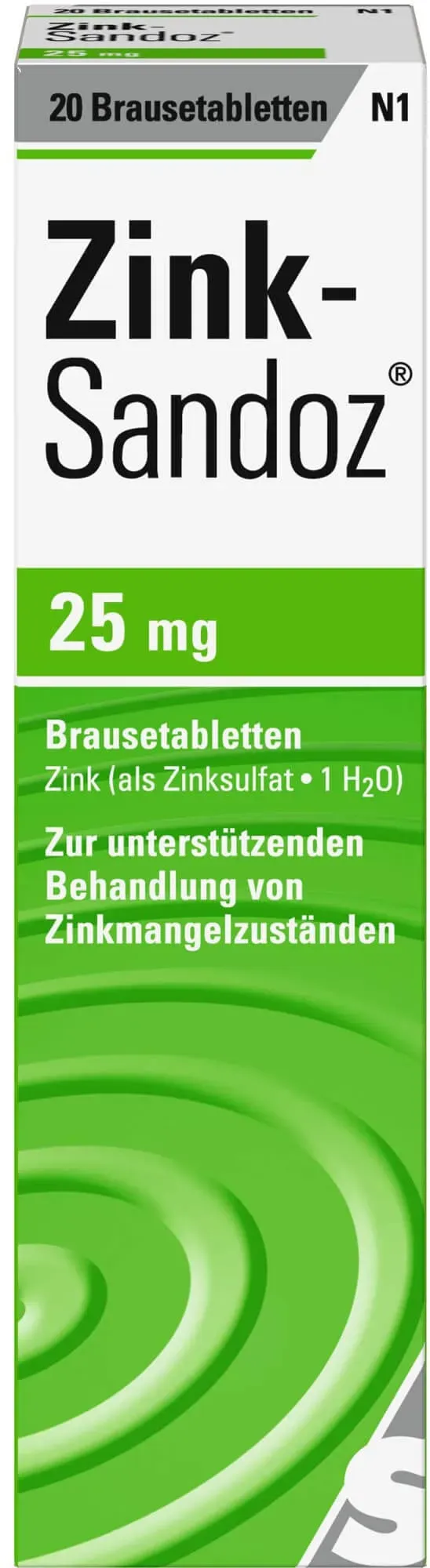 Kategorie: Arzneimittel - Hexal - GTIN:4150002097631 - Wirkstoff: Zinksulfat bei Mangel an Zink Tabletten zur Herstellung einer Lösung zum Einnehmen apothekenpflichtiges Arzneimittel (PZN: 00209763). Zu Risiken und Nebenwirkungen lesen Sie die Packungsbeilage und fragen Sie Ihren Arzt oder Apotheker. Hersteller: Hexal AG, Deutschland (Originalprodukt aus Deutschland) - 5,14 Euro bei Amazon Marketplace Health & Personal Care - gefunden von billiger.de ![]() ![]() Zink-Sandoz 25 mg Brausetabletten, 20 St. Tabletten