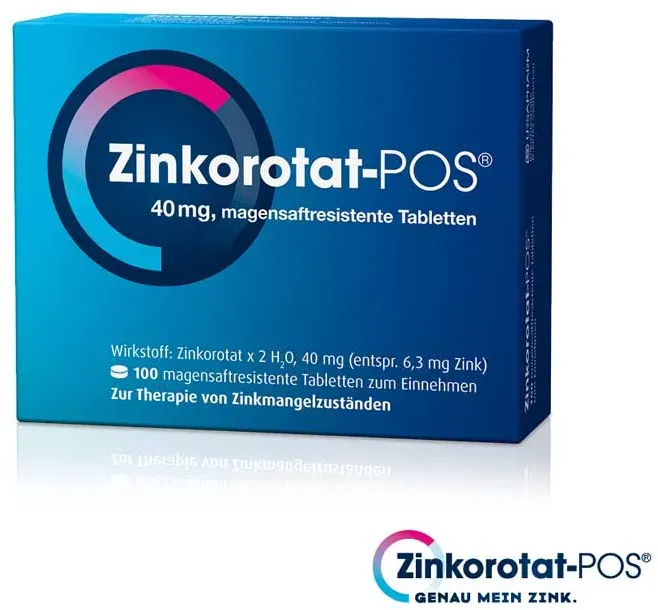 URSAPHARM Arzneimittel - Wirkstoff: Zinkorotat 2 H?O. Anwendungsgebiete: Behandlung von Zinkmangelzuständen, die ernährungsmäßig nicht behoben werden können. Was enthält Zinkorotat-POS und wie wirkt es? Mit Zinkorotat- POS wurde gezielt eine organische Verbindung geschaffen. Das Zink ist dabei an natürliche Orotsäure gebunden, die auch im Körper vorkommt. Die Bioverfügbarkeit ist deshalb besonders gut. Dank des substanztypischen ?Verzögerungseffekts? von Zinkorotat wird das Zink langsam und gleichmäßig freigesetzt. So werden die Zellen fortlaufend und anhaltend mit dem wichtigen Spurenelement versorgt. Dieser positive Effekt wird durch mehrere kleinere Zinkgaben über den Tag verteilt ? anstelle einer einmaligen hohen Dosis ? noch zusätzlich unterstützt. Wie wird Zinkorotat-POS eingenommen? Nimm Zinkorotat-POS Tabletten unzerkaut mit ausreichend Flüssigkeit, idealerweise mit Wasser, mindestens eine halbe Stunde vor den Mahlzeiten ein. Die zeitliche Trennung kann die Aufnahme von Zink entscheidend verbessern. Falls dein Arzt keine andere Anweisung gibt, nimm als Erwachsener oder Jugendlicher ab 1 n 3-mal täglich 1 Tablette Zinkorotat-POS ein. Bei Langzeitanwendung können auch täglich 2 bis 3 Tabletten eingenommen werden. Kinder zwischen 4 und 1 n nehmen 2-mal täglich 1 Tablette ein. Jetzt bequem online auf sanicare.de bestellen! - bei sanicare.de - aus Yadore Produktdaten ![]() ![]() Zinkorotat-POS 40 - mg magensaftresistente eBay Tabletten, 100 Tabletten PZN 6340903