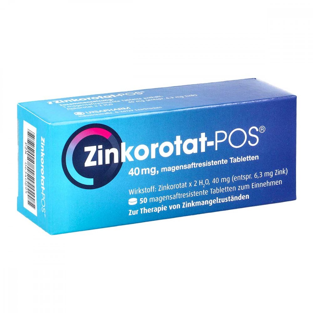 URSAPHARM Arzneimittel - Wirkstoff: Zinkorotat 2 H?O. Anwendungsgebiete: Behandlung von Zinkmangelzuständen, die ernährungsmäßig nicht behoben werden können. Was enthält Zinkorotat-POS und wie wirkt es? Mit Zinkorotat- POS wurde gezielt eine organische Verbindung geschaffen. Das Zink ist dabei an natürliche Orotsäure gebunden, die auch im Körper vorkommt. Die Bioverfügbarkeit ist deshalb besonders gut. Dank des substanztypischen ?Verzögerungseffekts? von Zinkorotat wird das Zink langsam und gleichmäßig freigesetzt. So werden die Zellen fortlaufend und anhaltend mit dem wichtigen Spurenelement versorgt. Dieser positive Effekt wird durch mehrere kleinere Zinkgaben über den Tag verteilt ? anstelle einer einmaligen hohen Dosis ? noch zusätzlich unterstützt. Wie wird Zinkorotat-POS eingenommen? Nimm Zinkorotat-POS Tabletten unzerkaut mit ausreichend Flüssigkeit, idealerweise mit Wasser, mindestens eine halbe Stunde vor den Mahlzeiten ein. Die zeitliche Trennung kann die Aufnahme von Zink entscheidend verbessern. Falls dein Arzt keine andere Anweisung gibt, nimm als Erwachsener oder Jugendlicher ab 1 n 3-mal täglich 1 Tablette Zinkorotat-POS ein. Bei Langzeitanwendung können auch täglich 2 bis 3 Tabletten eingenommen werden. Kinder zwischen 4 und 1 n nehmen 2-mal täglich 1 Tablette ein. - bei sanicare.de - aus Yadore Produktdaten ![]() ![]() Zinkorotat-POS 50 St Tabletten magensaftresistent