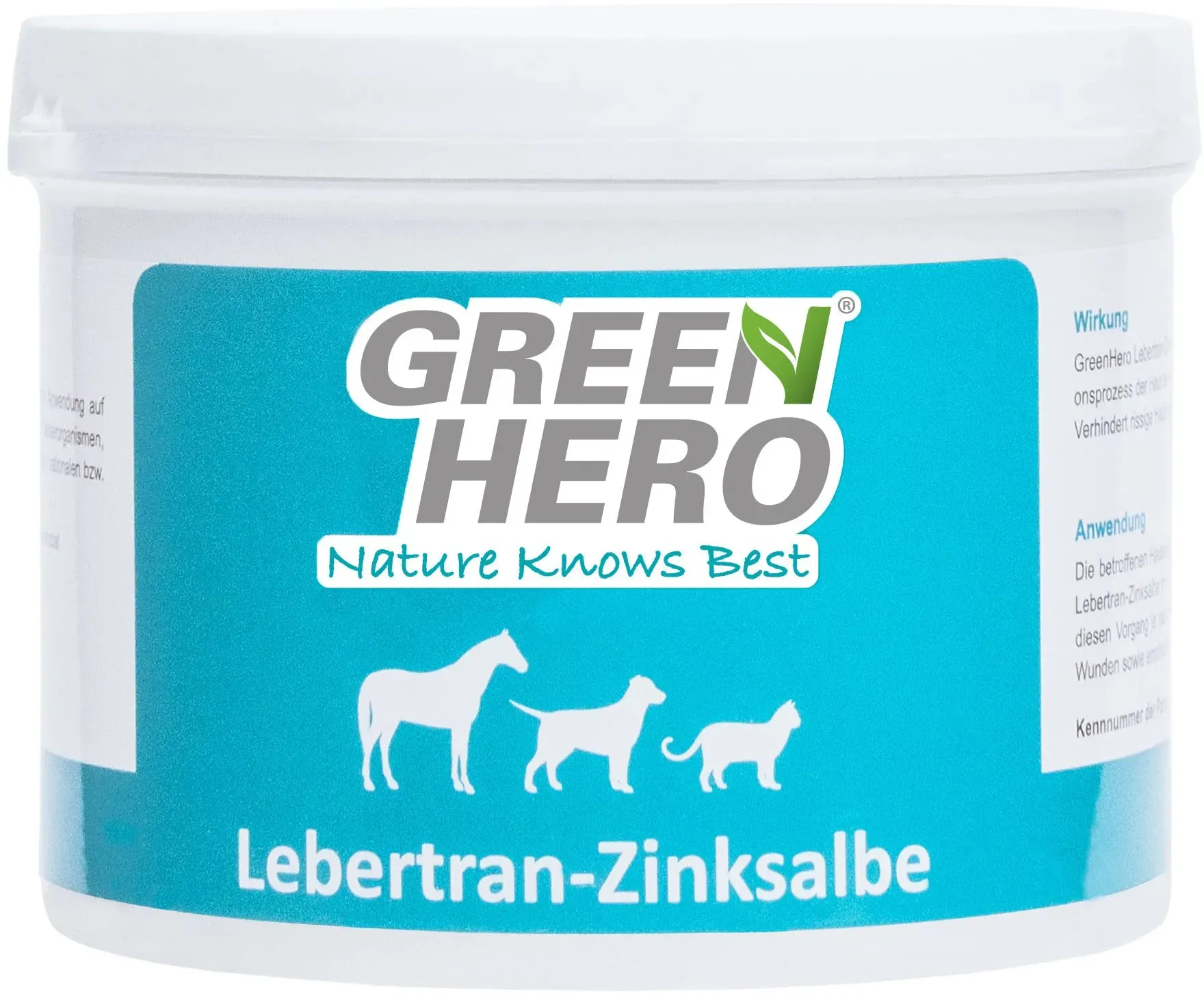 Auf Lager Versand durch AmazonGreenHero Lebertran-Zinksalbe, 500g, bei Hautproblemen von Haustieren, unterstützend bei Wunden, Reizungen, Juckreiz, Mauke und Anderen Hautproblemen, für Pferd, Hund, Katze und Co