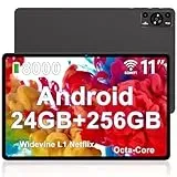Auf Lager Versand durch AmazonZIOVO 2025 Neuest Tablet 11 Zoll Android 14 mit 24GB RAM+256GB ROM/TF 1TB, Octa-Core 2.0 GHz, GMS, 8000mAh, Widevine L1, 5MP+13MP, 5G WLAN, BT 5.0, Face ID, GPS, Tablet mit Case - Schwarz