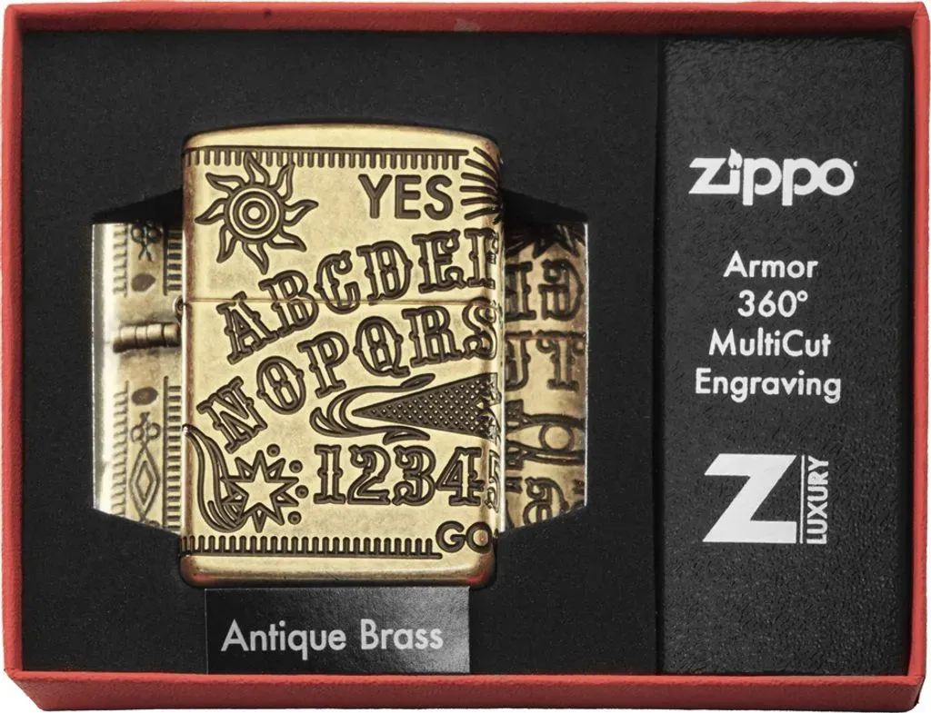 Verfügbarkeit: Auf Lager - Kategorie: Feuerzeuge - Zippo - GTIN:0191693234053 - Zippo Sturmfeuerzeug - Originales Benzinfeuerzeug - Sonderedition - Outdoor Feuerzeug - Made in USA - Klappfeuerzeug - Lighter - Cooles Stabfeuerzeug - Special Edition - Britto Quatro Design - 85,00 Euro bei Amazon Marketplace Home - gefunden von billiger.de Ein hochwertiges Armor Case Zippo mit Ouija Board Motiv und tiefer Gravur, das durch seine Detailverliebtheit überzeugt. ![]() ![]() Zippo Feuerzeug Ouija Board | Messing Antik | Armor Case | 8-seitig tiefengraviert