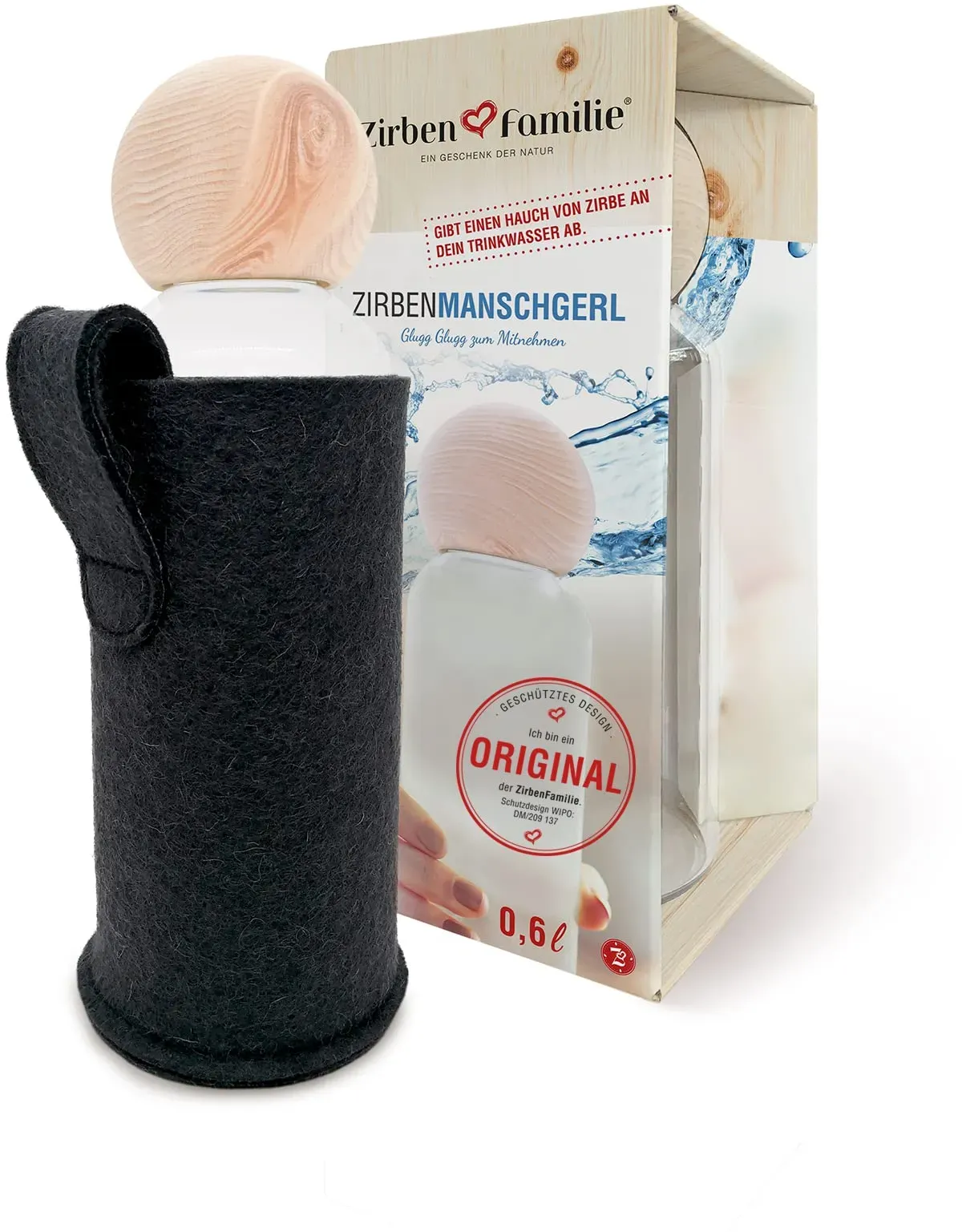 Kategorie: Sonstige Dekoartikel - Zirbelino - GTIN:9120063791101 - [Servus & Griasti] - bei Zirbelino: Deiner Tischlerei & Manufaktur aus Klagenfurt am Wörthersee in Kärnten, wo die Werte 'regionale Produktion', 'Nachhaltigkeit' und 'herzliches Miteinander' seit rund 1 n tagtäglich mit ganz viel 'Liebe' und 'Innovation' gelebt werden. [100% zertifiziertes Zirbenholz] - aus 'nachhaltiger Waldbewirtschaftung' - von der Holzforschung Austria jährlich bestätigt und mit der PEFC-Zertifizierung ausgezeichnet. Erlebe die luftgetrocknete Qualität und Reinheit von zertifiziertem Zirbenholz aus unserer Region. [Echtes Tischler-Handwerk] - Regionale Arbeitsplätze, traditionelles Handwerk, erfahrene Tischler- und Zirbenholz-Experten. Ein Unternehmen auf das du in Sachen Qualität, Regionalität und Kundenservice immer zählen kannst. [Natürliche Aromatisierung] - Unsere fein geschliffenen, 7cm großen Zirbenfreunde eignen sich als Verschluss für die 1 Liter Karaffe Misura und Nimbus. Sie verschließen das Gefäß und aromatisieren auf natürliche Art und Weise das eingefüllte Wasser in nur kurzer Zeit. NACHHALTIG & BEWäHRT: Zirbenprodukte werden traditionell in den Alpen angewendet. Besonders in Kärnten (wo wir herkommen) und in Südtirol. Aufgrund des dezenten, aromatischen Duftes empfehlen wir Zirbenprodukte als Lufterfrischer im Wohn- und Schlafzimmer, zur Raumduft Aromatisierung oder als Deko. [Eine schöne & sinnvolle Geschenkidee] - Zirbenprodukte 'gehen immer', sagt man bei uns in ... Diese Zirbenkugel mit Trinkflasche ist perfekt für unterwegs, um auch unterwegs von den Vorteilen der Zirbe zu profitieren. ![]() ![]() Zirben Familie Original ZirbenKugel Trinkflasche 600ml | Verleiht dem Wasser eine besondere Note | Flasche aus Glas mit Zirbenkugel und Filzschutzhülle aus Schurwolle | Wasserflasche für unterwegs