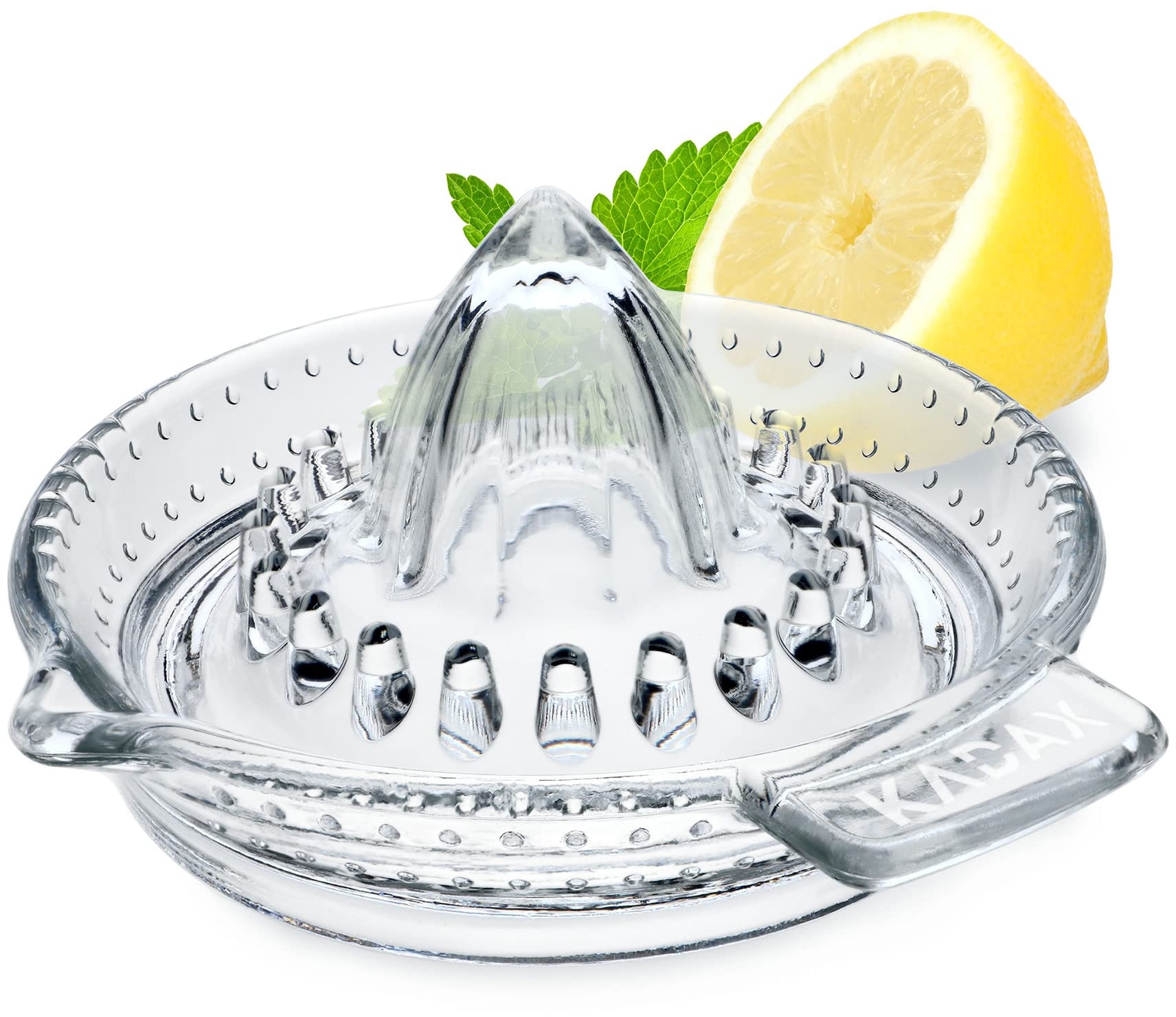 Zustand: Neu - Ersatzteile & Zubehör - Glasmark KROSNO 1992 - A110030-0142-0000-00 - EAN: 5903772942811 - Die Zitruspresse aus Glas mit einem Durchmesser von 14,2 cm ermöglicht dir, schnell und mühelos frischen Saft aus Zitronen, Limetten oder kleinen Orangen zu gewinnen - ganz ohne Anstrengung. Die transparente Glaspresse mit Auffangschale und praktischem Ausgießer sorgt dafür, dass jeder Milliliter direkt im Glas landet - kein Tropfen geht verloren! Dank des handlichen Griffs und der klassischen Form liegt die Presse stabil in der Hand und bietet eine sichere, komfortable Handhabung beim Auspressen. Diese Zitronenpresse ist ein hygienischer und stilvoller Küchenhelfer - sie nimmt keine Gerüche auf, verändert nicht den Geschmack und ist spülmaschinenfest. Du hast genug von Plastik in der Küche? Diese elegante Zitruspresse aus Glas überzeugt mit Leistung und Design - ein echter Blickfang auf deinem Tisch. - bei Amazon.de Die KADAX Zitruspresse aus Natrium-Kalzium Glas ist mit 8.96 Euro eine robuste und langlebige Option. ![]() ![]() KADAX Zitruspresse aus Natrium-Kalzium Glas, manuelle Zitronenpresse mit Ausgießer, Saftpresse, Zitronenentsafter, Orangenpresse, Limettenpresse (Transparent)