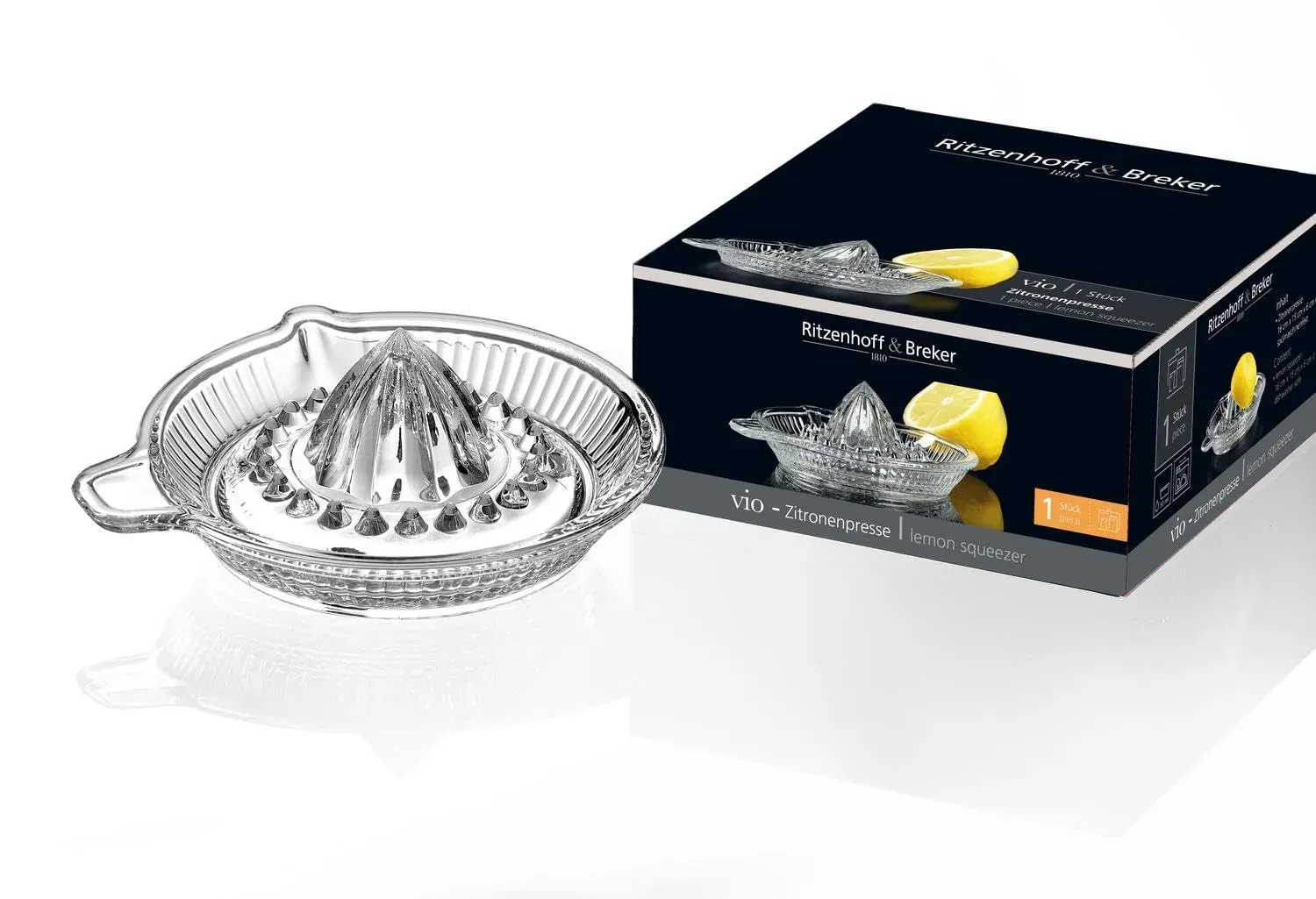 Kategorie: Entsafter - Lantelme - GTIN:4251012860229 - Maße & Material: Die Lantelme Zitronenpresse besteht aus strapazierfähigem Kunststoff, ideal für den täglichen Gebrauch. Maße: 14 cm x 6,5 cm, in den Farben Grün und Grau. Perfekt als Glasaufsatz, um Zitronen, Limetten und Orangen direkt im Glas zu pressen. Ein echter Küchenhelfer! Einfach im Gebrauch: Setzen Sie die Lantelme Presse direkt auf Ihr Glas und pressen Sie Ihre Zitrusfrüchte der Saft fließt direkt hinein. Ideal für Cocktails und frisch gepressten Saft! Dank ihrer handlichen Größe leicht zu bedienen und ideal für schnelle, direkte Pressvorgänge. Effektive Saftausbeute: Das speziell entworfene Gitter dieser Zitruspresse fängt Kerne zuverlässig auf, während der Saft ungehindert durchläuft. Kein Nachsieben nötig! Erleben Sie eine manuelle Saftpresse, die den maximalen Ertrag aus jeder Frucht bietet für Limetten, Zitronen und Orangen. Leicht zu reinigen: Die Lantelme Saftpresse ist spülmaschinenfest und lässt sich dadurch besonders mühelos reinigen. Kein lästiges Säubern per Hand! Einfach nach Gebrauch in die Spülmaschine legen und die Presse ist bereit für den nächsten Einsatz. Auch ideal für den täglichen Gebrauch. Hochwertiges Design: Robustes Kunststoffmaterial verleiht dieser Zitronenpresse eine lange Lebensdauer und Stabilität. Die Presse bleibt selbst bei regelmäßigem Einsatz wie neu. Ein hochwertiges Küchenwerkzeug, das sich durch Langlebigkeit auszeichnet perfekt für Saftliebhaber und Kochbegeisterte! - ... Die Ritzenhoff & Breker Vio Zitronenpresse ist mit 10.91 Euro eine kompakte und stilvolle Option für kleinere Mengen. ![]() ![]() Ritzenhoff & Breker Vio Zitronenpresse, Zitronenentsafter, Zitrus Presse mit Ausgießer & Henkel, Kleine Saftpresse aus Glas, 50 ml, 820003