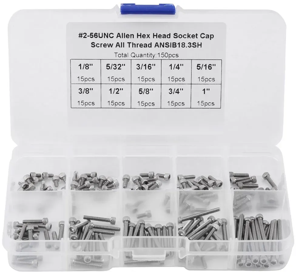Auf Lager Versand durch AmazonZoll Schrauben Sortiment, 150 Stücke Zoll Schrauben Set, #2-56 UNC Gewinde 9 Länge Zollschrauben Sortiment(1/8"/5/32" 3/16"/1/4"/5/16"/3/8"/1/2" /5/8"/3/4"/1") Metall Schrauben Muttern Kit mit Box