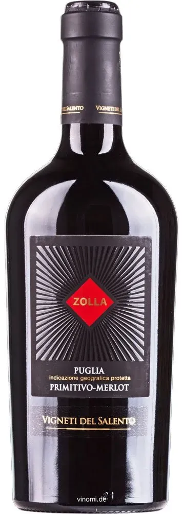 11.33 / 1 l - Vigneti del Salento - EAN: 8019873724403 - Viel Potential zum Lieblingswein Der Zolla Primitivo Merlot zeigt sich im dunklen Purpur mit violetten Reflexen. Der Wein aus Apulien duftet nach Kirsche und Himbeere. Im Hintergrund untermalen feine Würze, Schokolade, Vanille und eine Spur... - bei silkes-weinkeller.de - aus Yadore Produktdaten Dieser Zolla Primitivo di Manduria aus dem Jahrgang 2022 ist mit 8.69 Euro ein solides Angebot von einem spezialisierten Weinhändler. ![]() Vigneti del Salento Zolla Primitivo di Manduria 2022