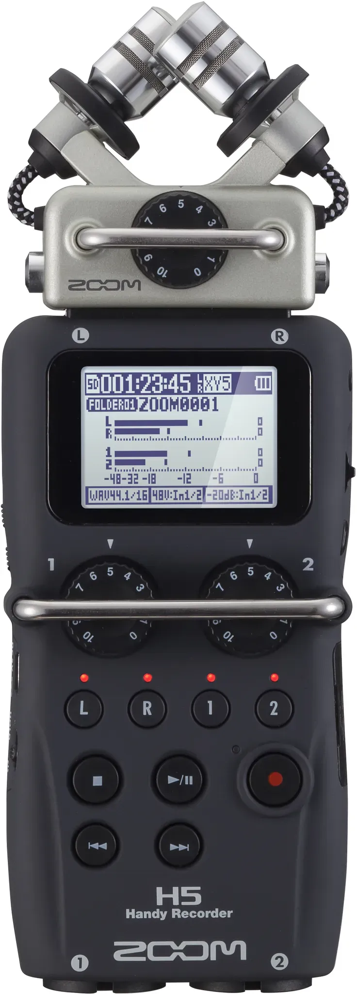 Mikrofone Lifestyle Technik Audio Hifi - - Zoom H5. 4-Spur Mobilrekorder für Musiker, Conten-Creator u. Tonschaffende. Tonaufnahmen über eingebautes X/Y-Stereomikrofon u. 2 XLR-Mikrofoneingänge simultan möglich. innovatives Wechselkapselsystem für die Anpassung an alle Aufnahmeszenarien, u. a. Mitte/Seite. professionelle Tonqualität mit herovrragend guten Mikrofonen u. Wandlern. herausragende Pegelfestigkeit bis 140 dB SPL ohne Clipping. der ideale Begleiter bei Outdoor-Einsätzen, für Filmaufnahmen, Interviews, Live-Mitschnitte, Sampling, Atmo-Aufnahmen u. als Skizzenheft für den Proberaum. Backup-Funktion erstellt zweiten Satz Spuren mit 12 dB niedrigerem Pegel. Pre-Record-Funktion vereinfacht spontanes Starten der Aufnahme. USB-Audio-Interface mit Loopback-Funktion. 3/8'-Gewinde ermöglicht Montage auf Mikrofonstativen o. Zooms Blitzschuhadapter (separat erhältlich). weiteres Zubehör optional erhätlich. SD-Karte (bis 32 GB) und Batterien (2x AA) bitte separat bestellen . Weitere Funktionen: . chromatisches Stimmgerät u. Metronom. eingebaute Effekte (Hochpassfilter, Kompressor/Limiter). M/S-Decodierung. Vari-Speed u. Vari-Pitch. Audionormalisierung u. -Editing. Overdub- u. Mixdown-Funktion. alternativ nutzbarer 3,5 mm-Mikrofoneingang mit Plugin-Speisung. 3,5 mm-TRS Ausgang für Kopfhörer oder DSLR-Kameras. Lieferumfang: . Bedienungsanleitung. XYH-5 X/Y Mikrofonkapsel. USB-Kabel. Windschutz (Schaumstoff). Transportcase. Der Mobilrekorder für alle Fälle. Der Zoom H5 ist ein ... Ein Standardangebot für den Zoom H5, das eine zuverlässige Kaufoption darstellt. ![]() ![]() Zoom H5