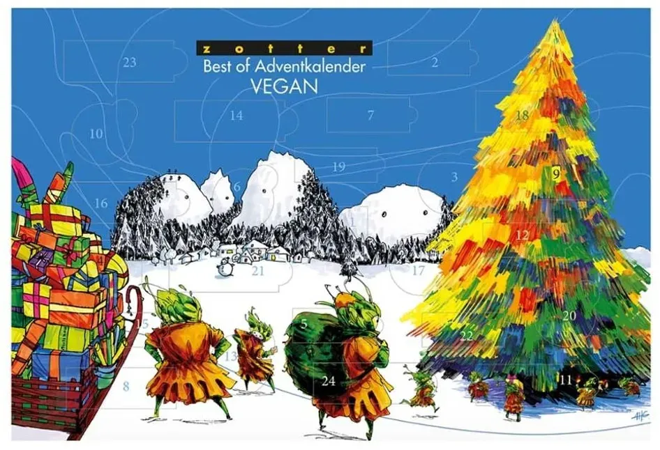 Zustand: Neu - Adventskalender Adventskalender mit Speisen & Getränken - Zotter - - EAN: 9006403073932 - - Verkäufer: confiserieonline im amazon.de Marketplace ![]() ![]() Zotter Best of Adventskalender Vegan 300g, 24 Türchen gefüllt mit Zotter Schokolade, handgeschöpfte Schokolade, Bio-Pralinen, Trinkschokolade, ideal zum Verschenken an Erwachsene & Kinder