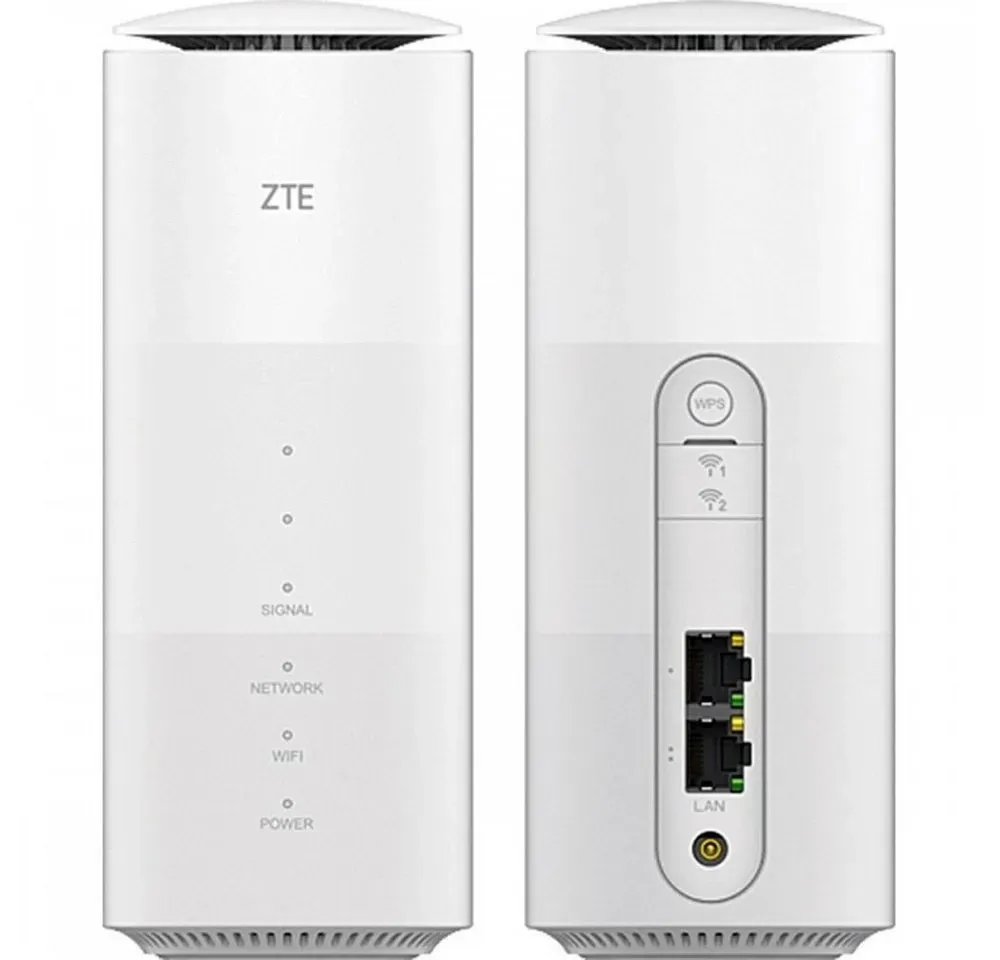 Kategorie: Router - ZTE - GTIN:6902176053337 - ZTE HyperBox 5G LTE WLAN Wireless Router WWAN - MC801A Weiß Wir präsentieren stolz den ZTE HyperBox 5G LTE WLAN Wireless Router WWAN in strahlendem Weiß. Dieser leistungsstarke Router der Marke ZTE, Modellnummer MC801A, ist die perfekte Lösung für schnelle und zuverlässige Internetverbindung. Schöne Leistung Der ZTE MC801A ist ein stationärer 5G/LTE Router Unterstützt schnelle 5G-Netzwerke Bis zu 30 Geräte können mit dem ZTE MC801A verbunden werden Zwei LAN Ports für die gleichzeitige Nutzung mehrere Geräte Stationäre Nutzung: Kein Akku; Stromversorgung über Netzteil Führende Antennentechnologie für optimale Leistung Unterstützt schnelles Wi-Fi 6 mit bis zu 1,775 Gbit/s Spezielle Ventilierung mit Kamineffekt zur effektiven Kühlung Niedriger Stromverbrauch IPv6 Adresse & IPv6 only Premiumdesign Bis zu 2 Gbit/s via LTE Neben einem bis zu 1,5 GHz schnellen Prozessor aus einem ARM Cortex A7 Kern und 4GB Speicher, ist im ZTE MC801A auch das Qualcomm Snapdragon X55 Modem verbaut. Dieses unterstützt die Mobilfunkstandards UMTS, LTE und 5G.Via 4G sind dank LTE Cat20 im Downloads Datenraten von bis zu 2 Gbit/s möglich. Im Upload sind es mit Cat15 bis zu 150 Mbit/s. Hierbei werden verschiedene 4G-Frequenzen mit FDD-LTE und TDD-LTE genutzt.Noch schneller funktioniert der Datentransfer via 5G. Hier gibt der Hersteller sogar bis zu 3,43 Gbit/s im Download und 255 Mbit/s im Upload an. Wo weder 5G noch 4G verfügbar sind, kann das Gerät zudem ... Ein Angebot von Galaxus.de zum oberen Ende des Preisspektrums, das für Kunden interessant sein könnte, die Wert auf den Händler und dessen Service legen. ![]() ZTE MC801A, Router, Weiss