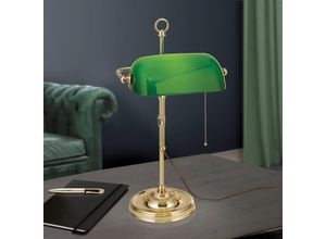 Lampen Leuchten Wohnen - - Stehleuchte Lyon in edler Messingoptik - eine flexible und elegante Lichtquelle Die Optik dieser stilvollen Leuchte ist von klassischen Vorbildern inspiriert und besticht mit einem zeitlos-eleganten Touch. Das Design kombiniert gekonnt schlanke Geraden mit effektvollen Rundungen und lässt den weißen Textilstoff mit den mattierten Oberflächen der Metalleinfassung in einen fruchtbaren Dialog treten. Die Stehlampe Lyon ist für ein Plus an Flexibilität mit mehreren praktischen Features ausgestattet. Zum einen lassen sich die Leuchtmittel getrennt zuschalten, um die Lichtverhältnisse kontextbezogen anzupassen. Die Bedienung erfolgt nostalgisch und komfortabel über einen Zugschalter. Zum anderen ist die Stehlampe Lyon mehrfach höhenverstellbar, wobei sich die Höhe zwischen 140 cm und 180 cm stufenlos verändern lässt. Die klassisch-elegante Leuchte Lyon wertet nicht nur zeitlose, sondern auch moderne Einrichtungskonzepte merklich auf. Diese Lichtquelle harmoniert hervorragend mit allen Stilideen, die auf dezenten Luxus setzen. Als Grundelement einer gemütlichen Leseecke im Wohnzimmer, als eine attraktive Schlafzimmerleuchte oder als Lichtakzent in einer Nische - die höhenverstellbare Stehlampe Lyon zeigt sich besonders vielseitig. - Versandkostenfrei: false - Lieferzeit: 9 Tage - product_flag_accessory_wohnen: true - Hersteller-Farbe: matt messing weiß - Farbe: Weiß - - Versand mit DHL, DPD - Zahlungsoptionen: Vorkasse, Paypal, Kreditkarte, Rechnung, ... Eine hochwertige Bankerlampe im klassischen Design mit Zugschalter, die Eleganz und Funktionalität vereint. ![]() Bankerlampe Harvard mit Zugschalter, messing/grün
