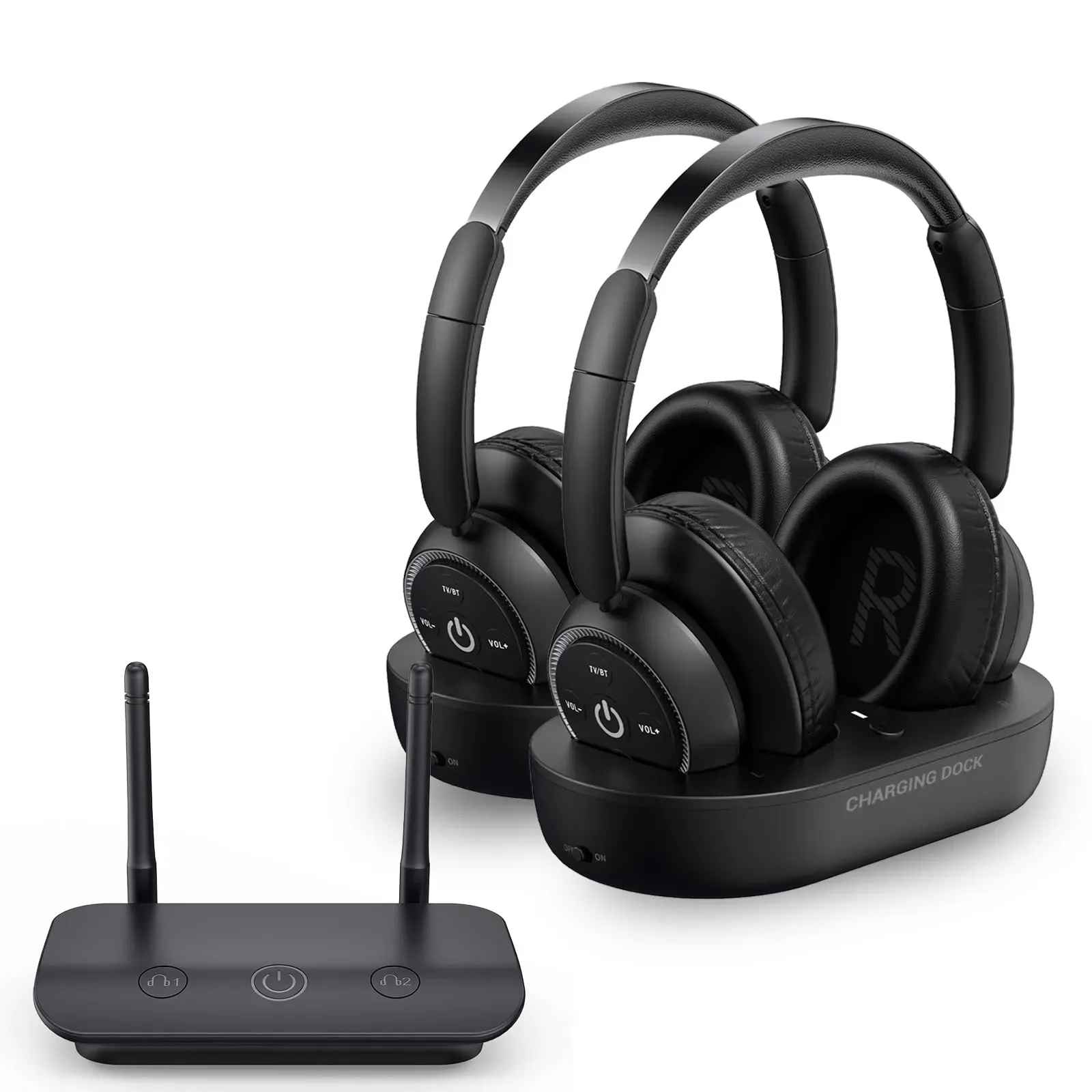 Auf Lager Versand durch AmazonZUPVI Dual-Wireless-Kopfhörer zum Fernsehen, TV-Kopfhörer Wireless für Senioren mit Sender-Ladestation, Unterstützung optisch, AUX, RCA und USB, hohe Lautstärke ohne Audioverzögerung, Plug-and-Play