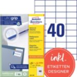 Zustand: Neu - 0,01 € / Stück - Adressaufkleber - AVERY Zweckform AVERY ZWECKFORM - 3651 - EAN: 4004182036518 - 4.000 weiße, selbstklebende blanko Etiketten im Format 52,5x29,7mm - mit Top Klebkraft auf verschiedenen Untergründen - ideal für universelle Beschriftungen und Anwendungen Innovative ultragrip-Technologie - ein dreidimensionales Profil auf der Rückseite des Etikettenbogens sorgt für optimalen Druckereinzug und Bogenführung - ideal für Stapelverarbeitung und Seriendruck Umweltfreundlich: FSC-zertifiziertes Papier aus verantwortungsvoll bewirtschafteten Wäldern und anderen kontrollierten Quellen Gestochen scharfes Druckbild ohne Verwischen - rt staufreier Druckerdurchlauf auf allen gängigen Druckern (auf Laser bestätigt durch TÜV SÜD) ohne Klebstoffablagerungen zu hinterlassen Blanko Etiketten einfach selbst gestalten und bedrucken mit kostenlosen Online-Vorlagen von AVERY Zweckform - den Link hierzu finden Sie auf der Produktverpackung oder auf der AVERY Zweckform Website - bei Amazon.de Dieses Angebot bietet 4000 ultragrip Universaletiketten für 32,07 Euro, was eine gute Balance zwischen Preis und Qualität darstellt. ![]() AVERY Zweckform ultragrip Universaletiketten 3651 Selbsthaftend DIN A4 Weiß 52,5 x 29,7 mm 100 Blatt 40 Etiketten