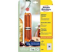Zustand: Neu - 0,06 € / stück - Universal-Aufkleber - AVERY Zweckform - 5087 - EAN: 4004182050873 - 180 selbstklebende, ovale Aufkleber im Format 63,5x42,3mm - mit Top Klebkraft auf verschiedenen Untergründen - bei Bedarf ganz einfach und ohne Kleberückstände wiederablösbar Ideal für jede Art von Kennzeichnung oder Beschriftung - von Marmeladengläsern, Selbstgemachtem, Aufbewahrungsboxen oder Schubladen bis hin zur Kennzeichnung von Büromaterial, Mappen oder Unterlagen Umweltfreundlich: FSC-zertifiziertes Papier aus verantwortungsvoll bewirtschafteten Wäldern und anderen kontrollierten Quellen Gestochen scharfes Druckbild ohne Verwischen - rt staufreier Druckerdurchlauf auf allen gängigen Laser- und Inkjet-Druckern ohne Klebstoffablagerungen zu hinterlassen Blanko Etiketten einfach selbst gestalten und bedrucken mit kostenlosen Online-Vorlagen von AVERY Zweckform - den Link hierzu finden Sie auf der Produktverpackung oder auf der AVERY Zweckform Website - bei Amazon.de ![]() ![]() Avery Zweckform Etiketten 5087 weiss (5087)