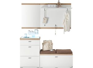 Vitrinen Wohnen Aufbewahren Ordnen Schränke, Kommoden Vitrinen - - Produktdetails: Markeninformationen: set one by Musterring bringt ordentlich Schwung in die Einrichtung: Die frische Einrichtungsmarke bietet topaktuelle Möbel für die Bühne des Lebens. Das Sortiment richtet sich an junge Menschen jeden Alters - an trendbewusste Individualisten also, die gerne auf der Höhe der Zeit wohnen und eine moderne Einrichtung als Ausdruck ihrer Kreativität und Lebensfreude verstehen. Die stylischen Möbel sind perfekt miteinander kombinierbar und ergänzen sich zu einem harmonischen Gesamtbild., Ausstattung Funktionen: Anzahl Einlegeböden: 8 Stk., Anzahl Einlegeböden groß: 2 Stk., Anzahl Einlegeböden klein: 6 Stk., Anzahl Füße: 4 Stk., Anzahl Glastüren: 1 Stk., Anzahl Holzeinlegeböden: 6 Stk., Anzahl Leuchtelemente: 1 Stk., Anzahl Türen: 1 Stk., Anzahl Griffe: 1 Stk., Art Einlegeböden: fest, Art Füße: Gleiter, Art Türen: Drehtür, Maßangaben: Breite: 63,7 cm, Tiefe: 37,2 cm, Höhe: 204 cm, Gewicht: 58 kg, Belastbarkeit Einlegeböden maximal: 2 kg, Hinweis Maßangaben: Alle Angaben sind ca.-Maße., Material: Material: Spanplatte, Material Korpus: Spanplatte, Material Türen: Spanplatte, Material Griffe: Metall, Material Beschläge: Metall, Material Scharniere: Metall, Material Bodenträger: Metall, Material Einlegeböden: Spanplatte, Farbe: Farbe Korpus: Weiss matt, Farbe Türen: Weiss matt, Farbe Griffe: Schwarz-grau, Farbe Absetzungen: Black-Pearl Sandstein, Farbhinweise: Bitte beachten Sie, ... Diese Kompaktgarderobe, bestehend aus 4 Teilen, ist eine umfassende Lösung für den Eingangsbereich. ![]() Kompaktgarderobe 'Lancaster Dielen', weiß, B:160cm H:194cm T:37,2cm, SET ONE BY MUSTERRING, Schränke, bestehend aus 4 Teilen, in zwei Farben erhältlich, Gesamtbreite 160 cm