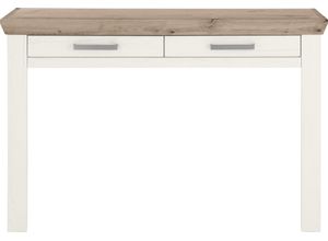Wohnen - - Produktdetails: Modell: York Schlafen, Markeninformationen: set one by Musterring bringt ordentlich Schwung in die Einrichtung: Die frische Einrichtungsmarke bietet topaktuelle Möbel für die Bühne des Lebens. Das Sortiment richtet sich an junge Menschen jeden Alters - an trendbewusste Individualisten also, die gerne auf der Höhe der Zeit wohnen und eine moderne Einrichtung als Ausdruck ihrer Kreativität und Lebensfreude verstehen. Die stylischen Möbel sind perfekt miteinander kombinierbar und ergänzen sich zu einem harmonischen Gesamtbild., Ausstattung Funktionen: Anzahl Schubladen: 2 Stk., Anzahl geschlossener Fächer: 2 Stk., Anzahl Beine: 2 Stk., Art Füße: Wangen, Art Griffe / Beschläge: Bügelgriff, Maßangaben: Breite: 123 cm, Tiefe: 40 cm, Höhe: 80,4 cm, Breite maximal: 123 cm, Belastbarkeit maximal: 15 kg, Breite Tischplatte: 123 cm, Tiefe Tischplatte: 40 cm, Hinweis Maßangaben: Alle Angaben sind ca.-Maße., Tiefe maximal: 40 cm, Abstand zwischen Tischbeinen: 100 cm, Gewicht: 25 kg, Material: Material Gestell: Spanplatte, Material Griffe: Metall, Farbe: Farbe Tischplatte: Eiche Nelson, Farbe Gestell: Pino Aurelio, Farbe Füße: Pino Aurelio, Farbhinweise: Bitte beachten Sie, dass bei Online-Bildern der Artikel die Farben auf dem heimischen Monitor von den Originalfarbtönen abweichen können., Farbbezeichnung: Pino Aurelio/Eiche Nelson, Optik/Stil: Form: eckig, Beleuchtung: Modellbezeichnung: York Schlafen, Allgemein: Ausführung: Pino Aurelio/Eiche Nelson, ... Dieser Couchtisch mit StandfuÃ? und Zierelement bietet eine moderne und funktionale Ergänzung für das Wohnzimmer. ![]() Couchtisch 'Deltona', weiß (weiß matt, weiß matt, schwarz sandstein, weiß matt), B:110cm H:46,5cm T:65cm, SET ONE BY MUSTERRING, Tische, Couchtisch, Standfuß mit Zierelement, offenes Fach, zwei Farben, B110 x T65 cm