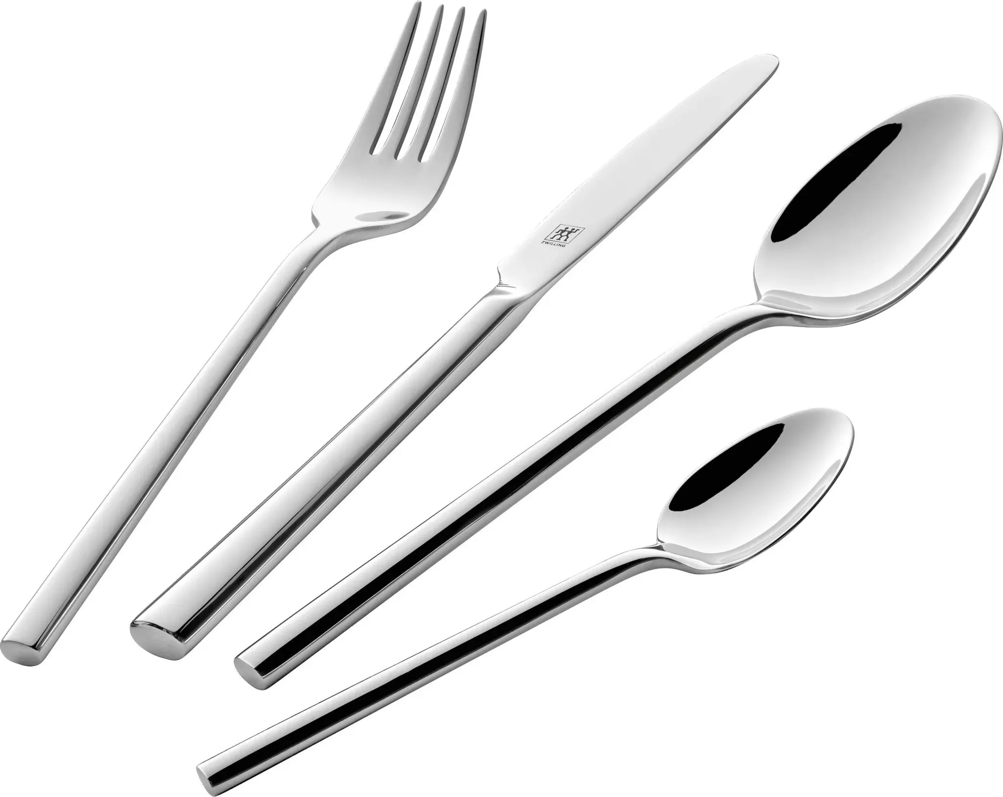 Zwilling - EAN: 4009839668098 - Dieses 30-teilige Menüset aus der Serie ABERDEEN für sechs Personen beinhaltet Löffel, Gabeln und Messer für die tägliche Hauptmahlzeit oder das vornehme Dinner. Mit den jeweils sechs Kaffeelöffeln und Kuchengabeln sind Sie zudem für die Kaffeetafel ausgestattet. Alle Besteckstücke sind durch den hochwertigen und sauber verarbeiteten 18/10-Edelstahl robust, formstabil und für die Spülmaschine geeignet. Mit dem 30-teiligen Menüset von ZWILLING sind Sie sowohl für das alltägliche, gemeinsame Essen als auch für besondere Anlässe gut ausgerüstet. Hergestellt aus hochwertigem 18/10 Edelstahl. Rostfrei. Spülmaschinengeeignet. Vollständig poliert mit abgerundeten Kanten. Für bis zu sechs Personen. Modernes, puristisches Design. Oval geformte, schmale, gerade Stiele. Enthält 6 Menümesser, 6 Menügabeln, 6 Menülöffel, 6 Kaffeelöffel, 6 Kuchengabeln - bei zwilling.com - aus Yadore Produktdaten Dieses 60-teilige Set ist eine solide Wahl für größere Familien oder regelmäßige Gäste. ![]() ![]() Zwilling Aberdeen 60-tlg.