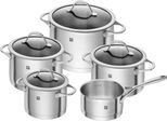 lieferbar-in 1-2 Werktagen bei dirZwilling Topf-Set Essence, Edelstahl 18/10 (Set, 9-tlg., je 1 Kochtopf Ø 16/20/24 cm, 1 Bratentopf Ø 20 cm, 1 Stieltopf Ø 16 cm), Sandwichboden sehr gute Wärmeverteilung Füllskala Edelstahlgussgriffe silberfarben