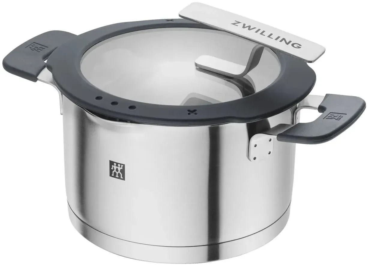 Kategorie: Töpfe - Zwilling - GTIN:4009839535086 - Aus Edelstahl 18/10 Deckelhalter und integriertes Sieb im Deckel Soft-Touch-Silikon Spülmaschinenfest - 95,90 Euro bei Amazon Marketplace Home - gefunden von billiger.de Ein 5-teiliges Kochtopfset mit praktischem integriertem Sieb im Deckel zu einem sehr guten Preis. ![]() ![]() ZWILLING Simplify Kochtopfset, 5-teilig, Mit integriertem Sieb im Deckel, Glasdeckel, Induktionsgeeignet, unbeschichtet, Edelstahl, Silber-Schwarz